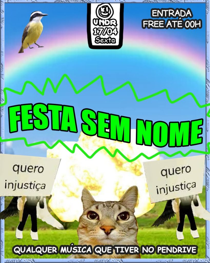 Undrcats, é chegada a hora de convocar a tripulação do Chapéu de Palha e zarpar com a gente em mais uma edição da UNDR SEKAI. Quando a tripulação atende ao chamado, você já sabe que vem por aí. “Gomu Gomu no…” PISTA! 🕚 HORÁRIO: 23h às 05h 🈚 Entrada FREE das 23h à 00h pra […]
